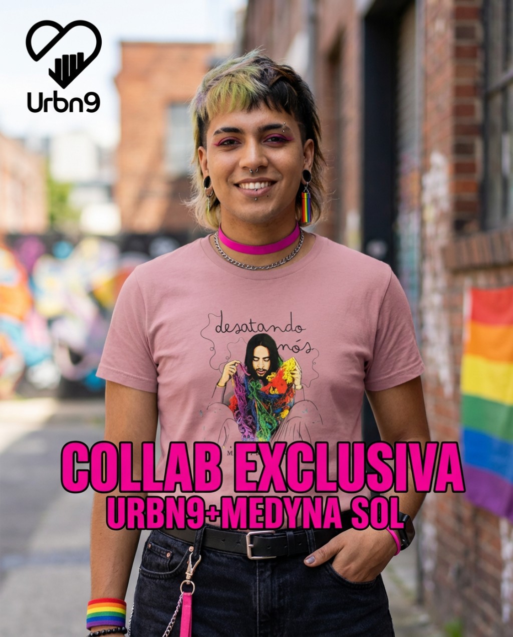 A parceria entre URBN9 e Medyna Sol nasceu de um ponto em comum: transformar trajetória, periferia e identidade LGBT+ em arte que se veste. A coleção cápsula inspirada em seu trabalho é uma celebração em modelagem, estampa e storytelling, pensada para quem quer expor, não esconder, quem really é.